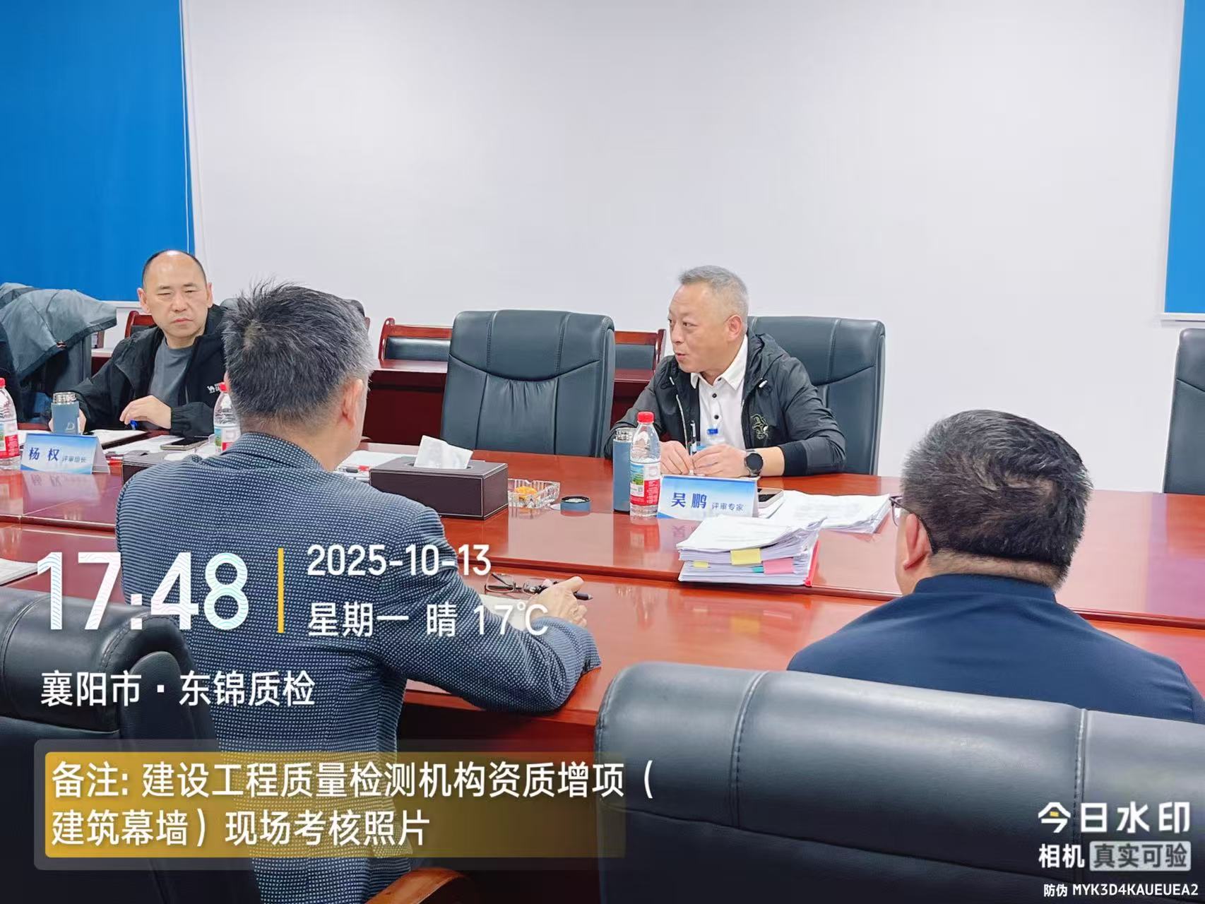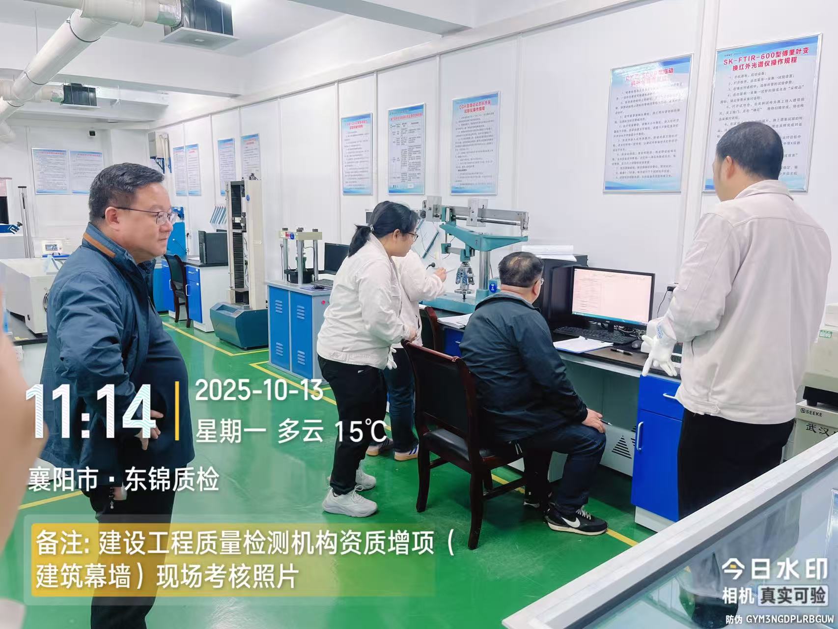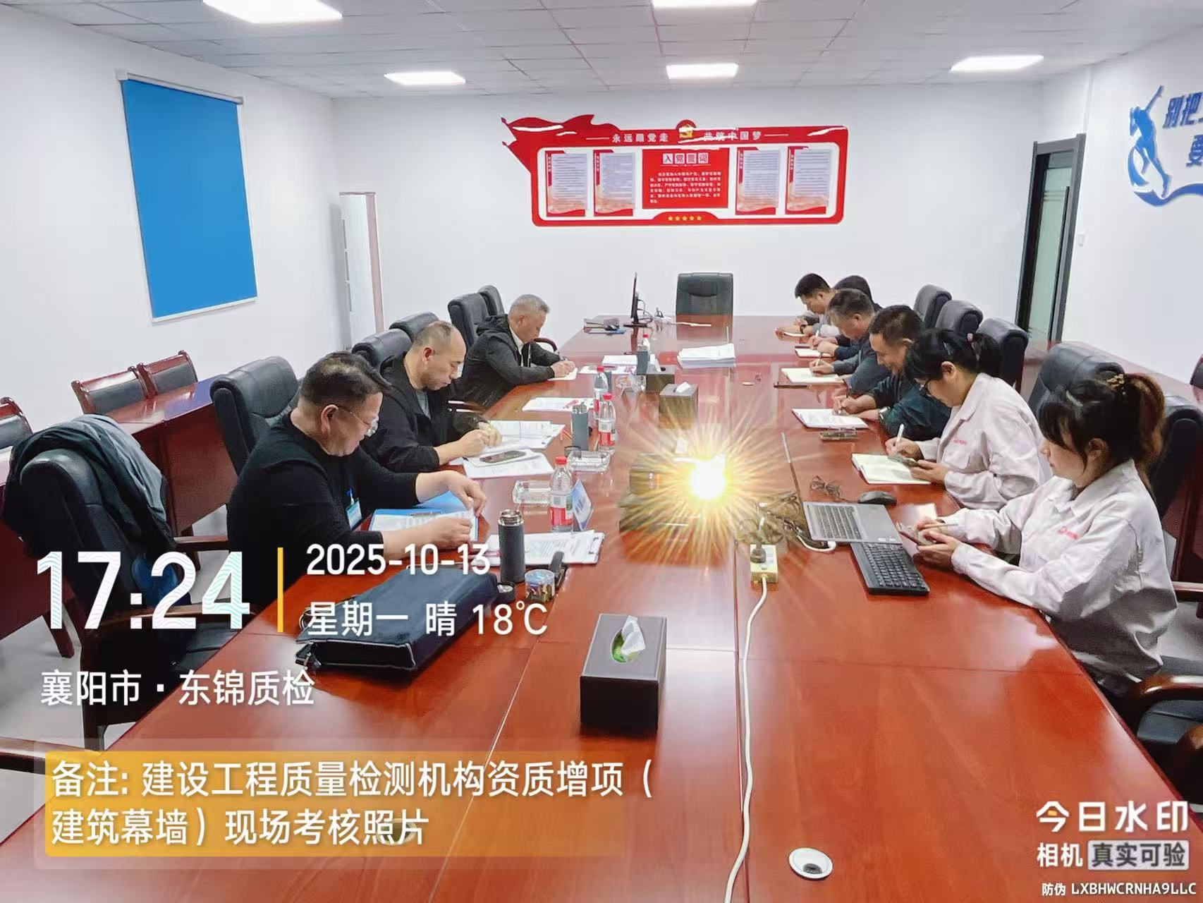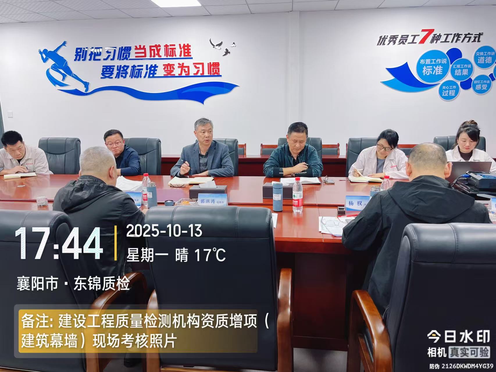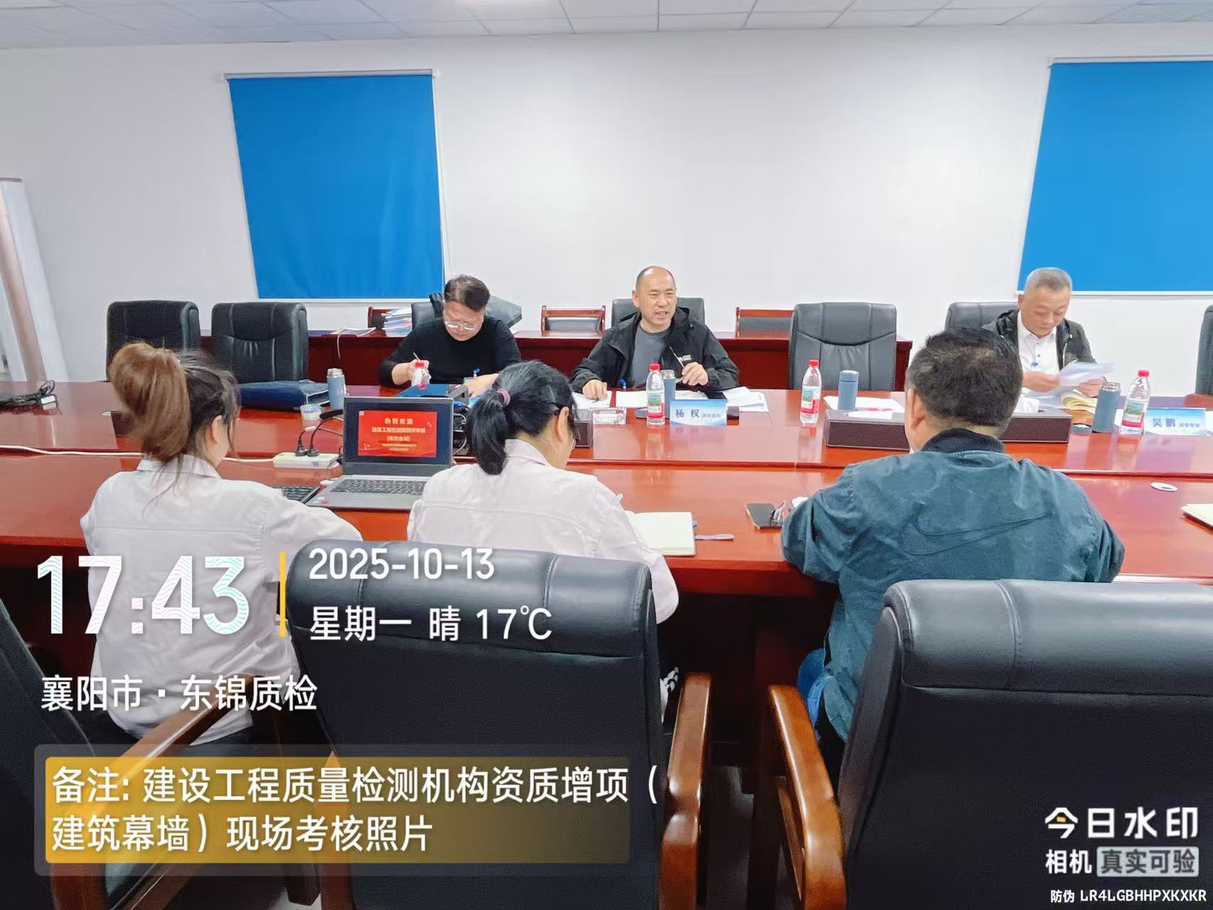 2025年10月13日,我公司迎來發(fā)展歷程中的重要一刻——建設(shè)工程質(zhì)量檢測(cè)機(jī)構(gòu)資質(zhì)增項(xiàng)(建筑幕墻)的現(xiàn)場(chǎng)評(píng)審。以資深專家楊主任為組長(zhǎng)的四人專家組蒞臨我司,進(jìn)行了全面、嚴(yán)格、細(xì)致的現(xiàn)場(chǎng)評(píng)審工作。經(jīng)過一天的緊張考核,專家組對(duì)我司的技術(shù)能力、管理水平及人員素質(zhì)給予了高度評(píng)價(jià),標(biāo)志著本次現(xiàn)場(chǎng)評(píng)審工作圓滿完成,為公司未來發(fā)展開啟了新的篇章。