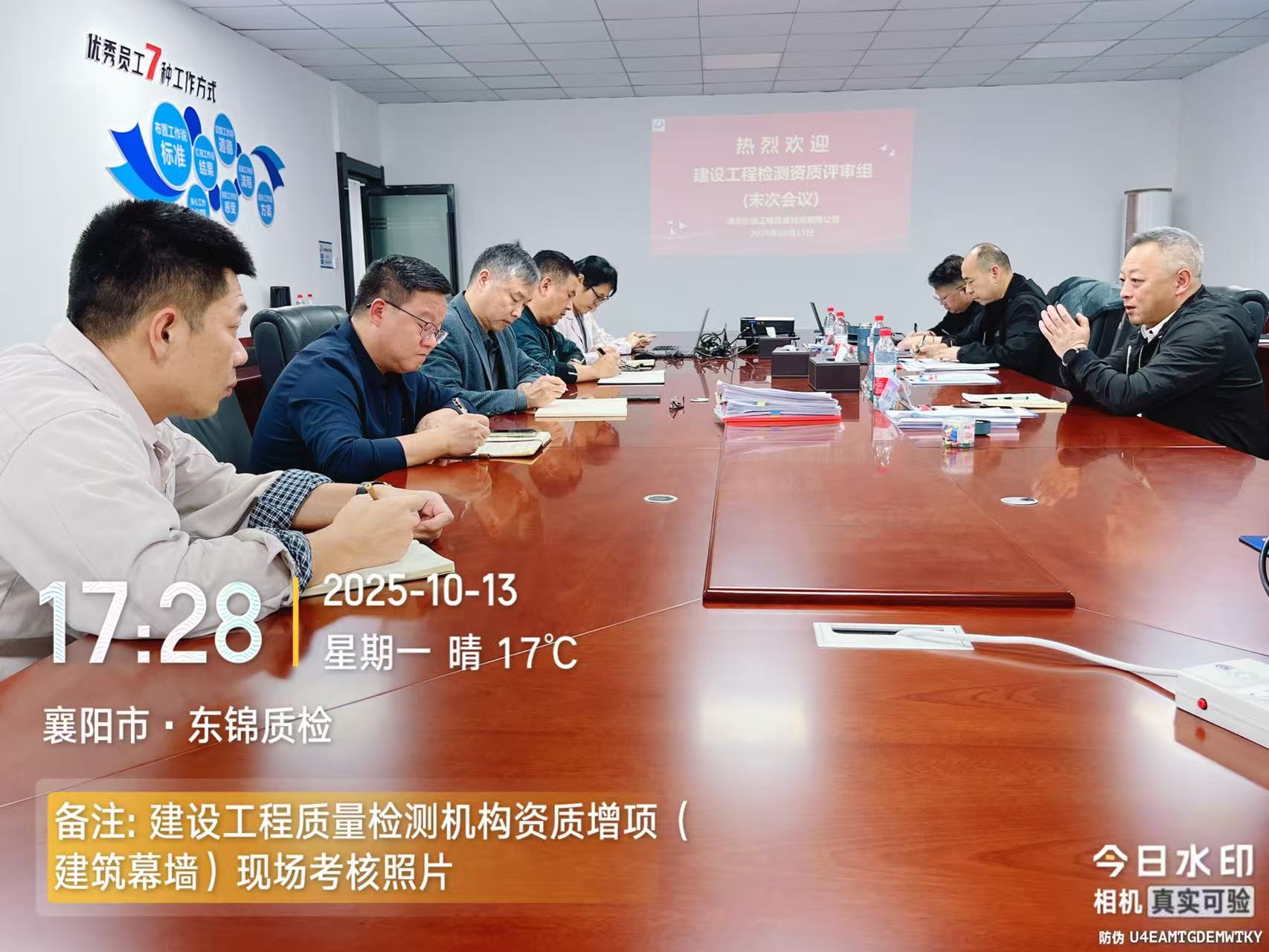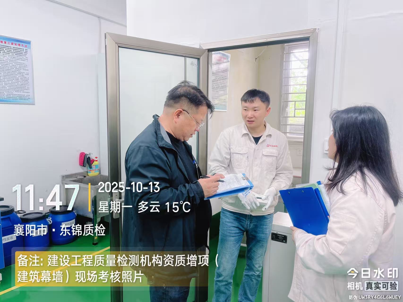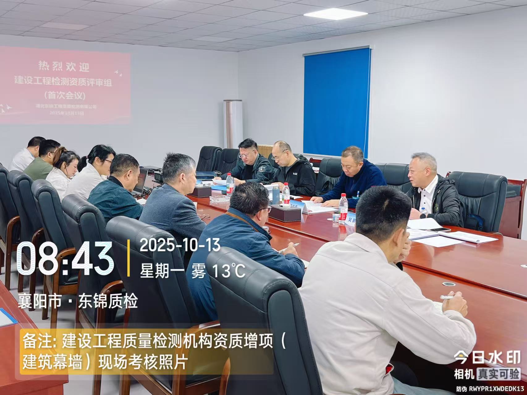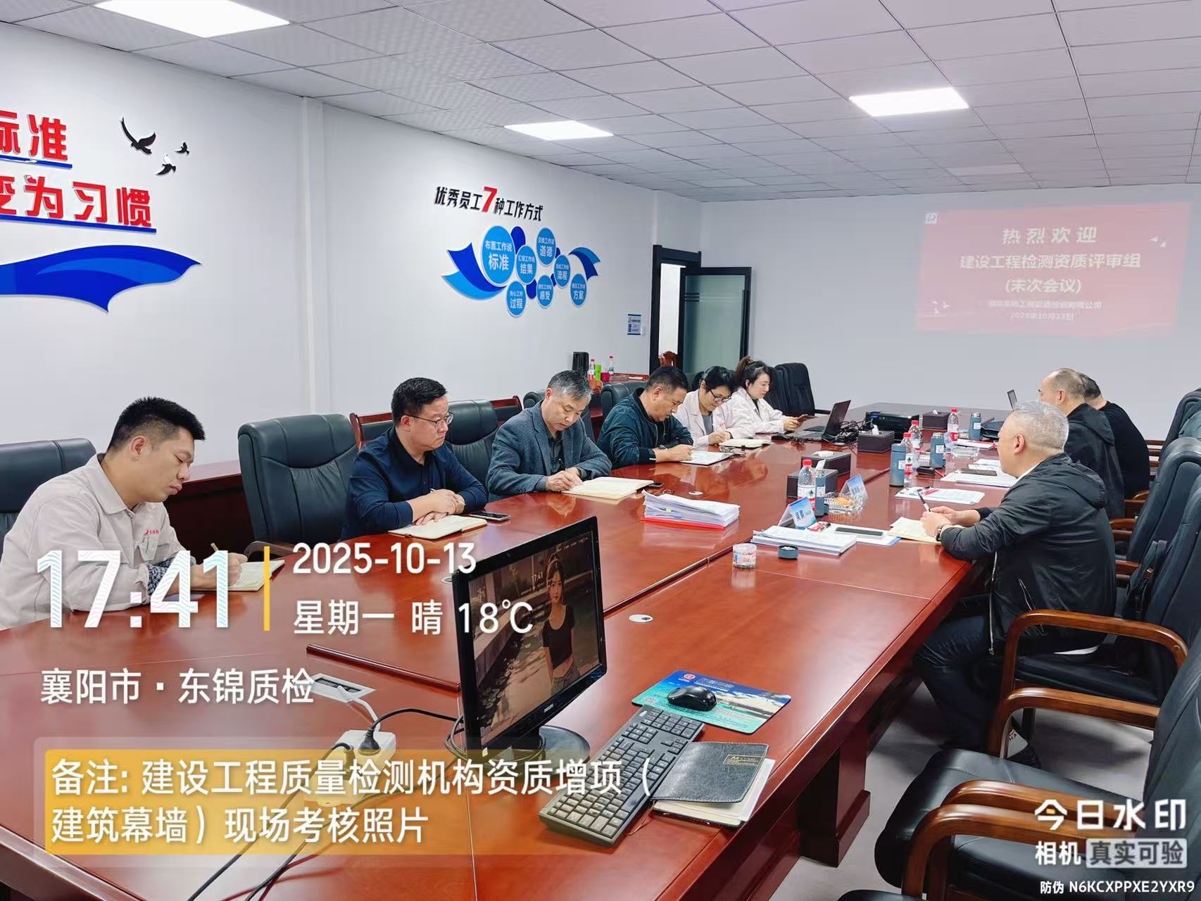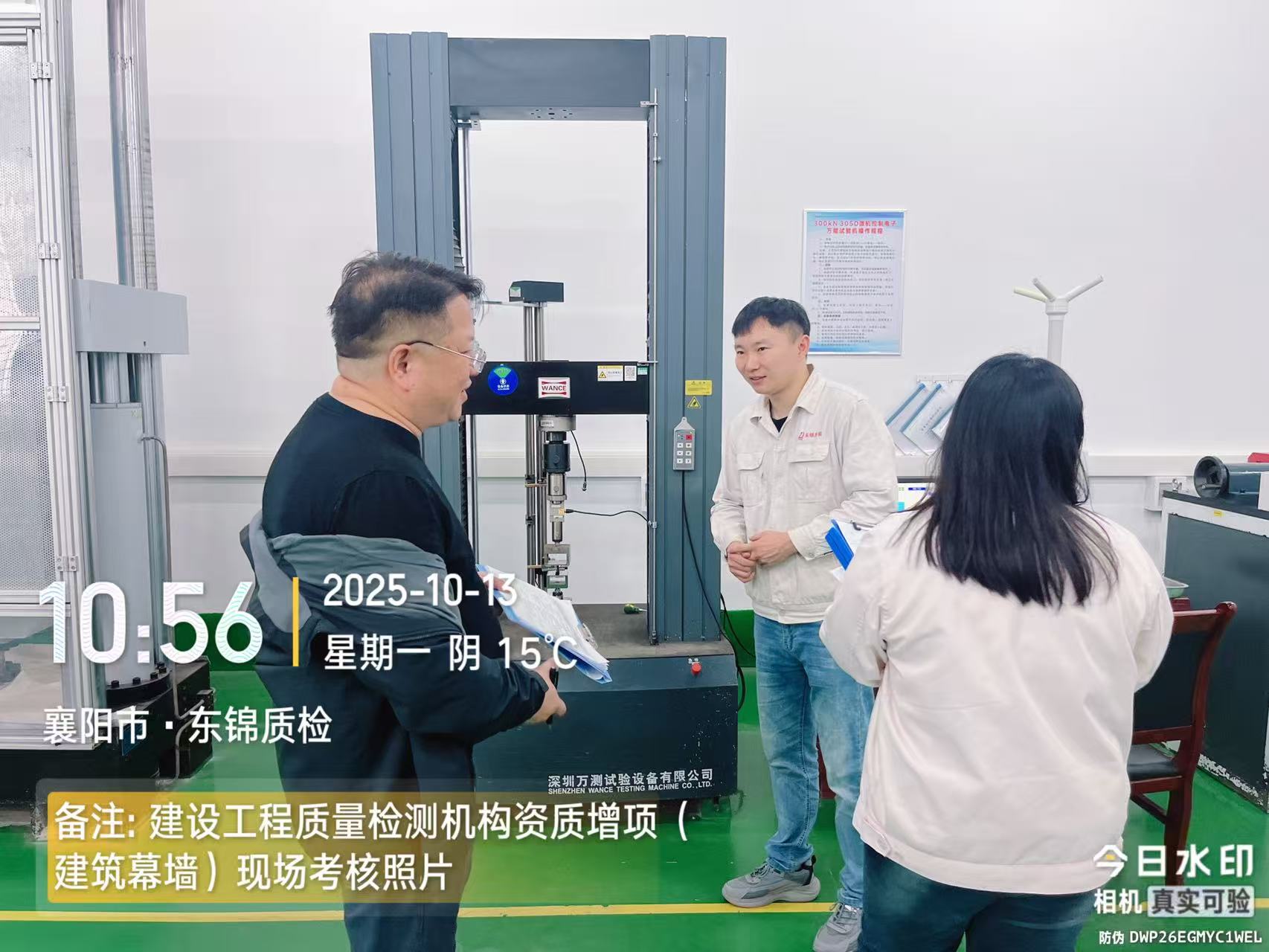 2025年10月13日,我公司迎來發(fā)展歷程中的重要一刻——建設(shè)工程質(zhì)量檢測(cè)機(jī)構(gòu)資質(zhì)增項(xiàng)(建筑幕墻)的現(xiàn)場(chǎng)評(píng)審。以資深專家楊主任為組長(zhǎng)的四人專家組蒞臨我司,進(jìn)行了全面、嚴(yán)格、細(xì)致的現(xiàn)場(chǎng)評(píng)審工作。經(jīng)過一天的緊張考核,專家組對(duì)我司的技術(shù)能力、管理水平及人員素質(zhì)給予了高度評(píng)價(jià),標(biāo)志著本次現(xiàn)場(chǎng)評(píng)審工作圓滿完成,為公司未來發(fā)展開啟了新的篇章。